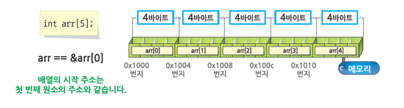 - 배열의 시작 주소를 구할대는 & 없이 배열명만 사용한다.