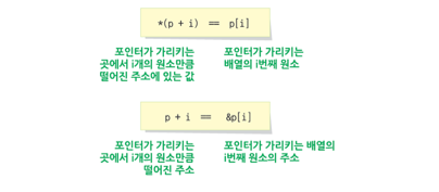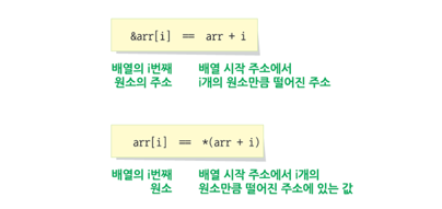 즉, 인덱스를 사용하는 대신 배열의 시작 주소로 포인터 연산을 하면 배열의 특정 원소에 접근할 수 있다.