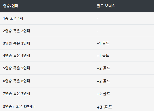 연승/연패 보너스가 있어서, 연승 혹은 연패로 골드를 모으는게 가장 효율적입니다.
