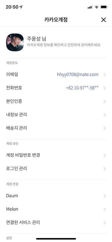 '카카오계정' 으로 들어갑니다.