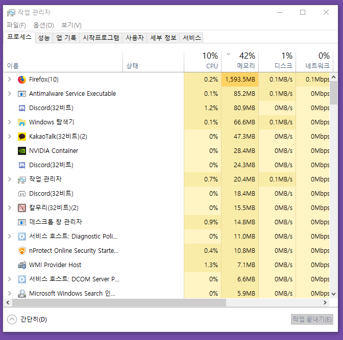 이럴 경우에는 윈도우 탐색기(explorer.exe)가 안켜져있거나, 제대로 동작하지 않는 상태인데요!