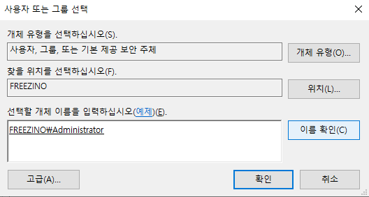 확인을 누르고, 적용>확인 순으로 빠져나갑니다. 그러면 권한을 얻은게 됩니다.