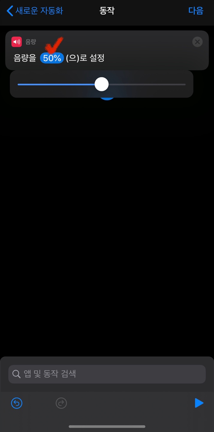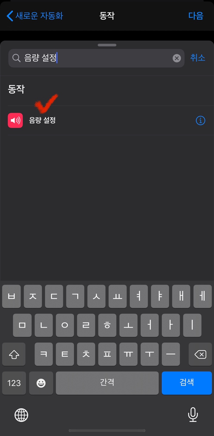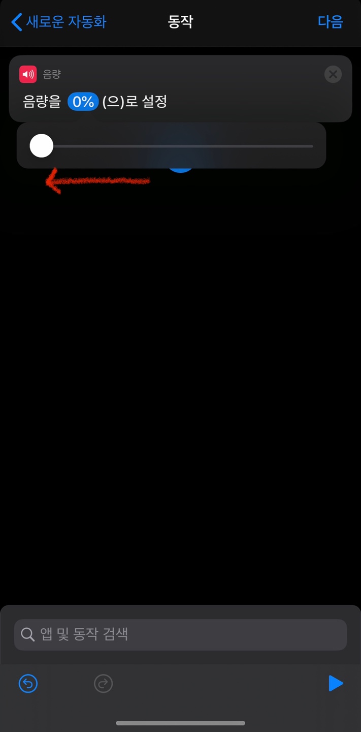 동작 추가 - > 음량 설정을 검색하여 선택해줍니다.