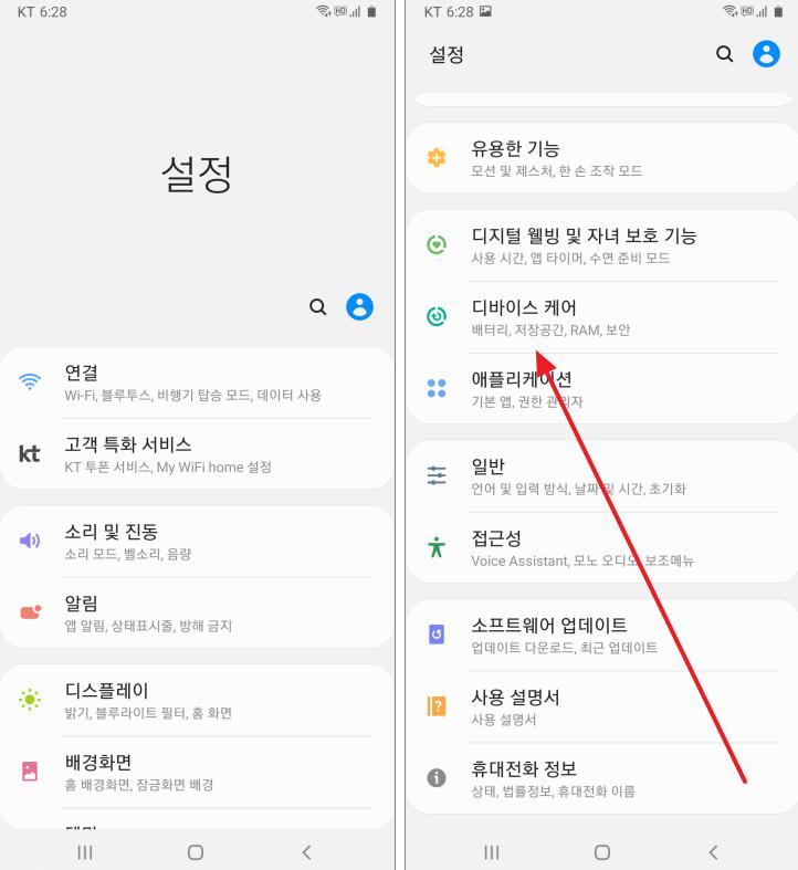 1. [설정]에 들어가서 [디바이스 케어]를 눌러주세요.