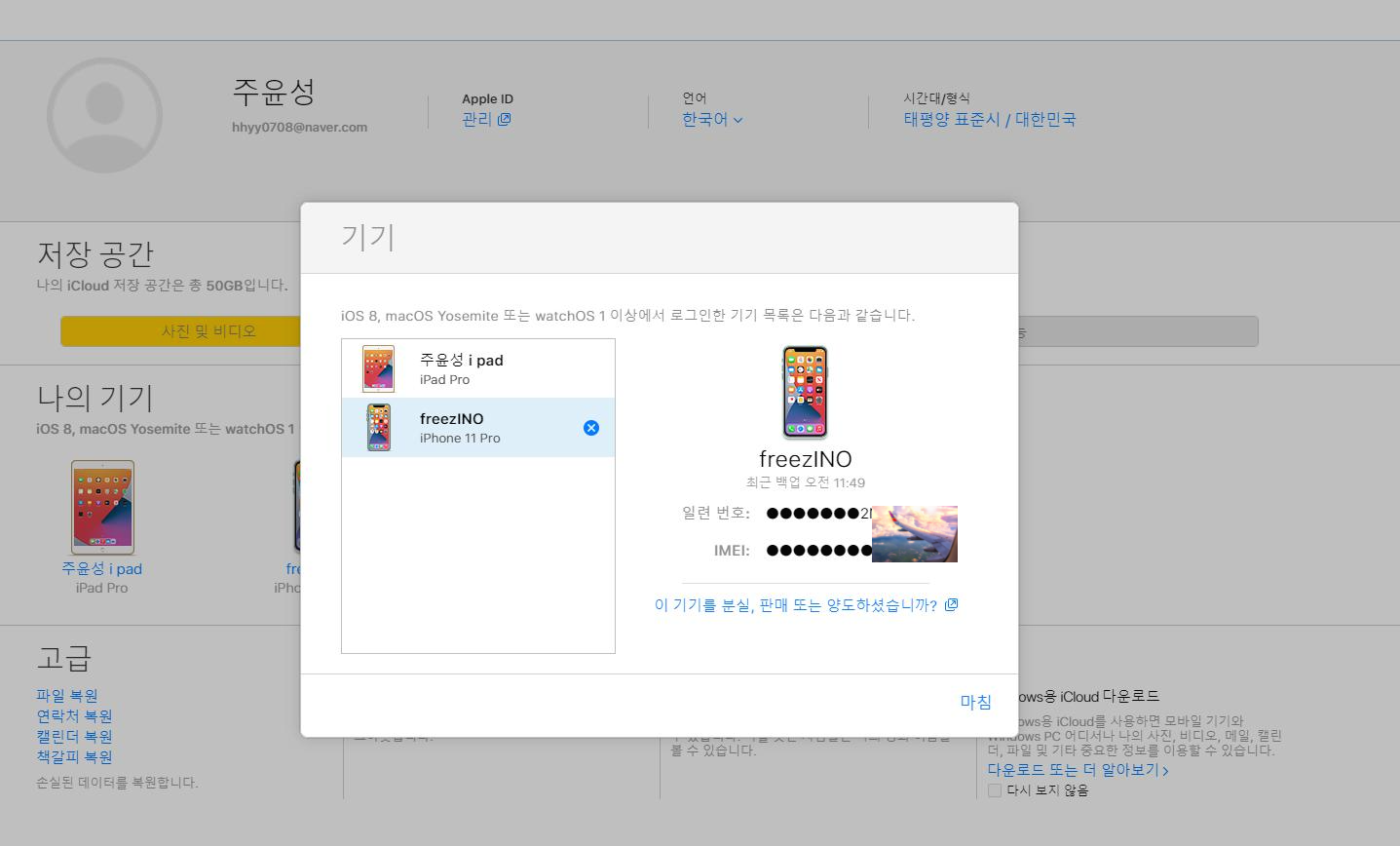 이렇게 나의 기기 목록이 나오고, 여기서 해당 기기를 눌러서 Apple에서 공식으로 제공하고있는 분실과 판매시 해야할 조치에 대한 가이드가 있습니다.