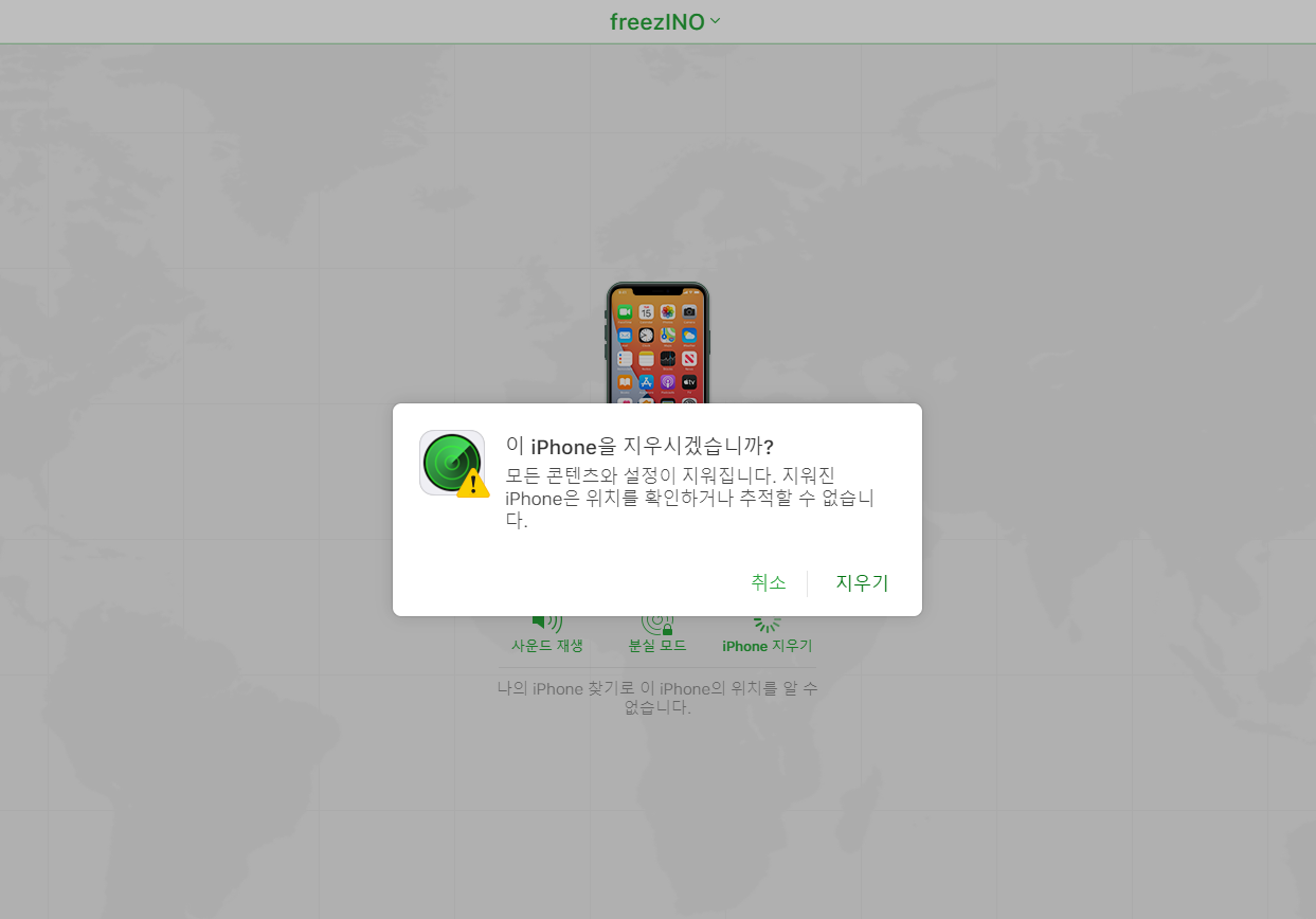 동일안 화면에서, iPhone 지우기를 눌러서 지울 수 있습니다.