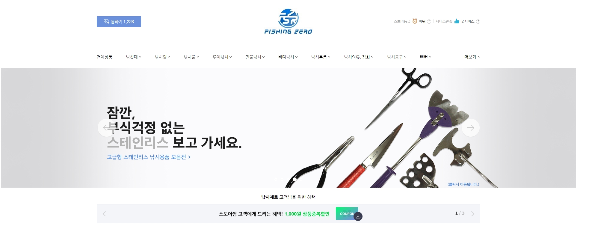 오픈마켓 '낚시제로' 쇼핑몰 메인(스마트스토어) 디자인입니다.