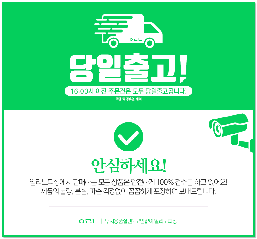 스마트스토어 상품상세페이지 최상단에 업로드되는 당일출고 홍보배너 이미지입니다.
