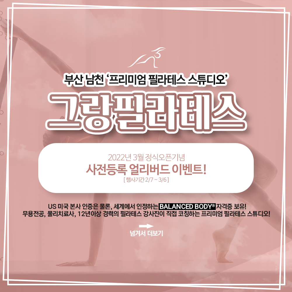 | 필라테스 스튜디오 업체 인스타그램 게시물(2) 시안 - GRAND PILATES. (0) | 2022.03.12 |