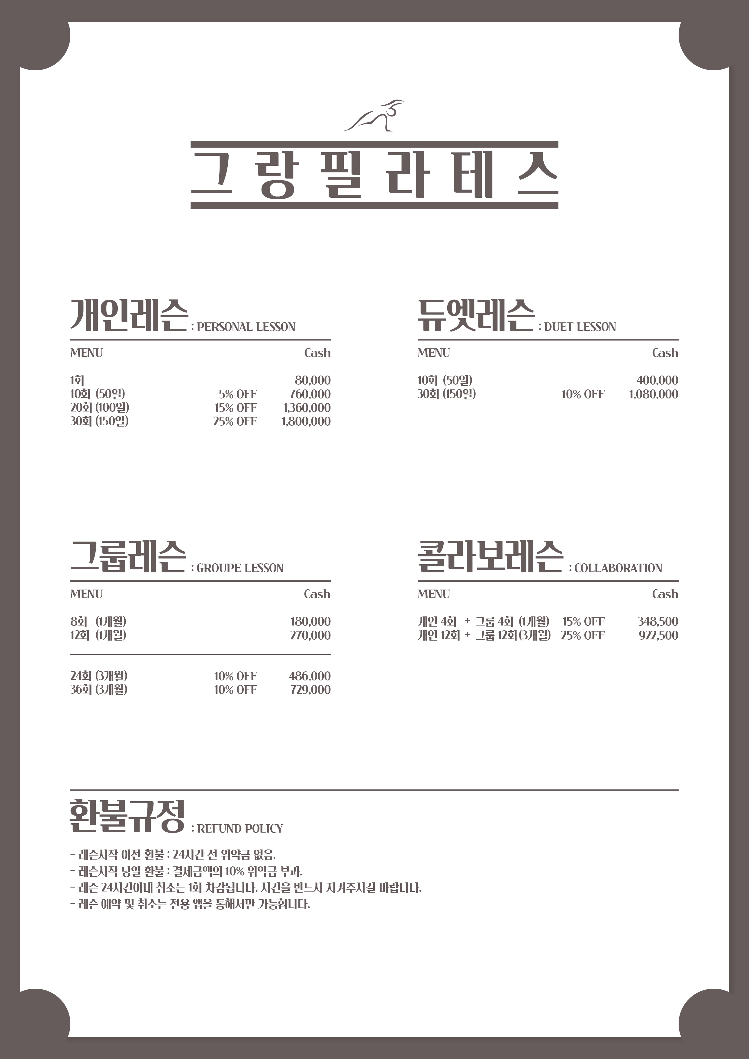 그랑 필라테스 스튜디오 테이블형 가격표 최종 시안 입니다.